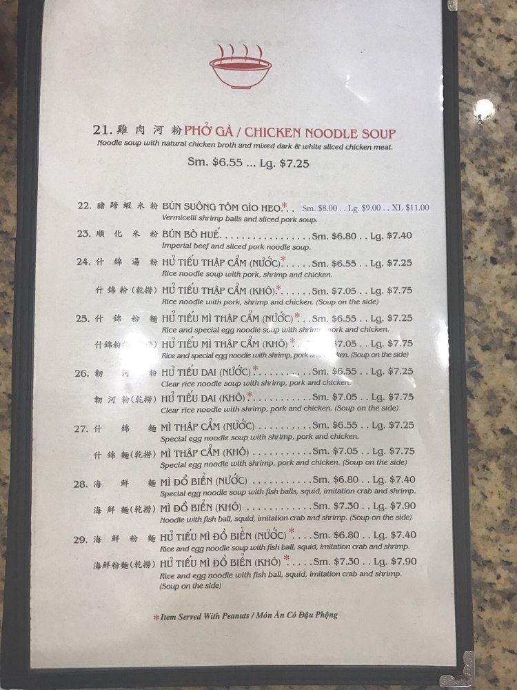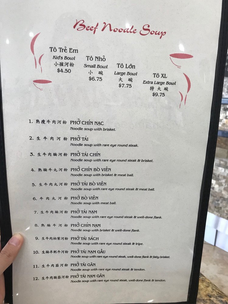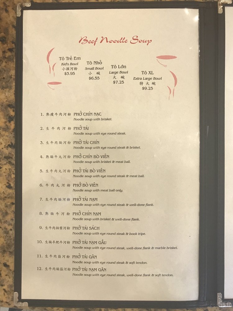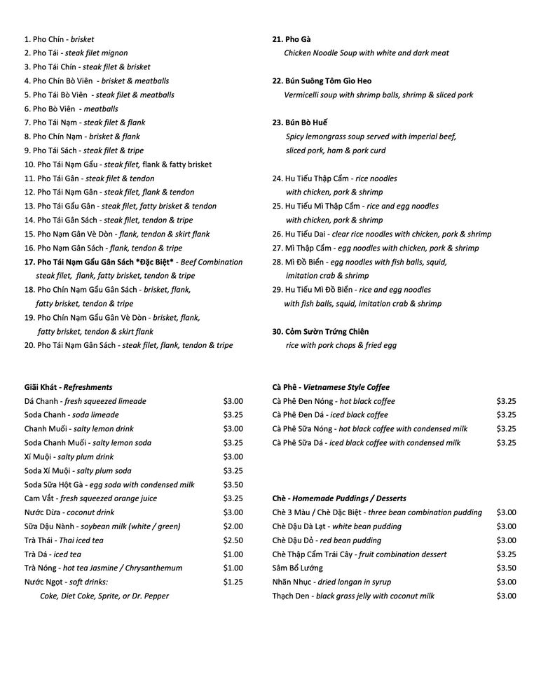Introducing the menu at Pho Danh, a Vietnamese soup restaurant located in Houston, TX, that offers a variety of options for both meat-lovers and vegans. From the popular Pho Tai Bowl with rare eye round steak to the flavorful Chen Suong Shrimp balls, the menu is rich in taste and quality. The refreshing CA Phe Den Nong coffee adds a perfect ending to your meal. Customers rave about the generous portions of meat, the flavorful and tender broth, and the fast and friendly service. With ample seating for large groups and a clean, inviting ambiance, Pho Danh is a top choice for authentic pho lovers. Whether you're a fan of beef or prefer chicken soup, Pho Danh delivers on taste, quality, and satisfying portions. Visit Pho Danh for a delicious and comforting dining experience that will leave you coming back for more.