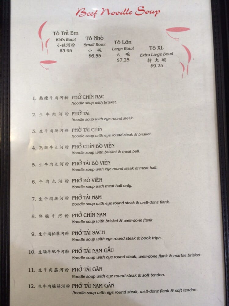 Pho Danh Menu (Update 2025)